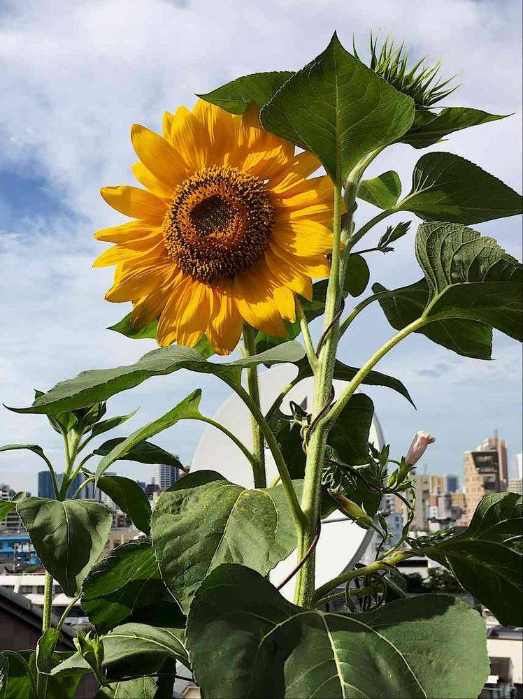実家のルーフバルコニーで父が種から育てたひまわり🌻
