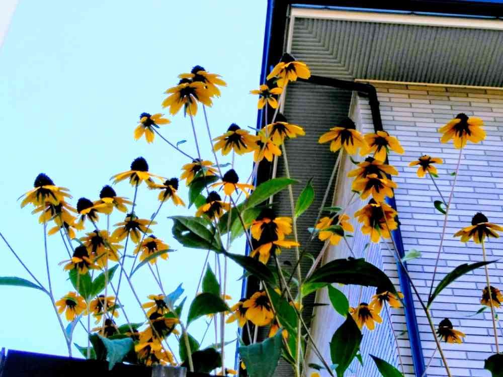 今朝の散策の帰り道、通り道のお宅の塀から、可愛いお花が…。