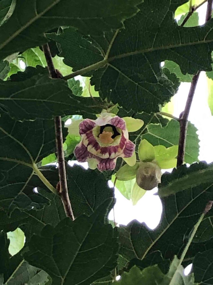 いつもの散歩道…またまた何やら上からそっとのぞいている花を発見!