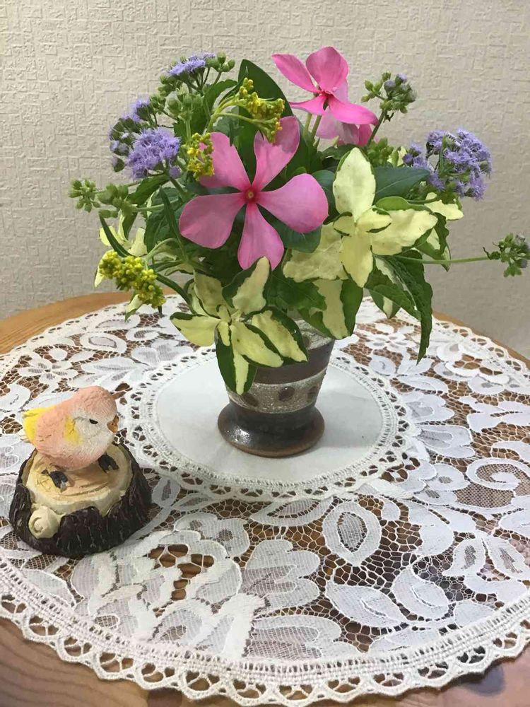 庭の 小花🌸 利用で、 朝 小さな 作品が 出来ました❣️
