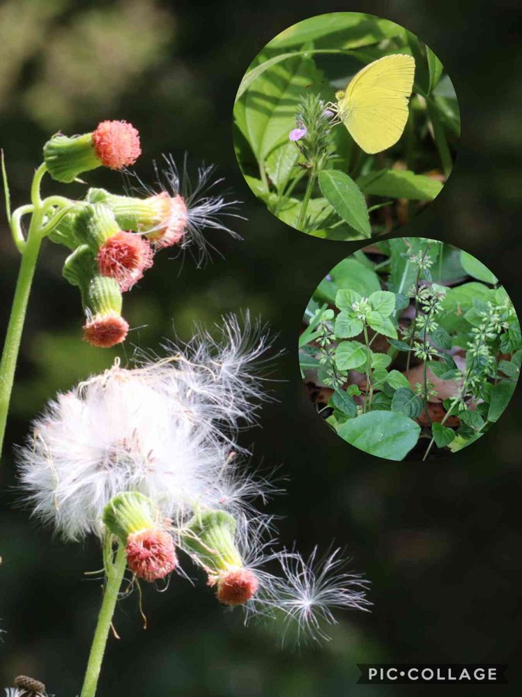 朱肉のような花に綿毛が飛び始めていて綺麗でした😊