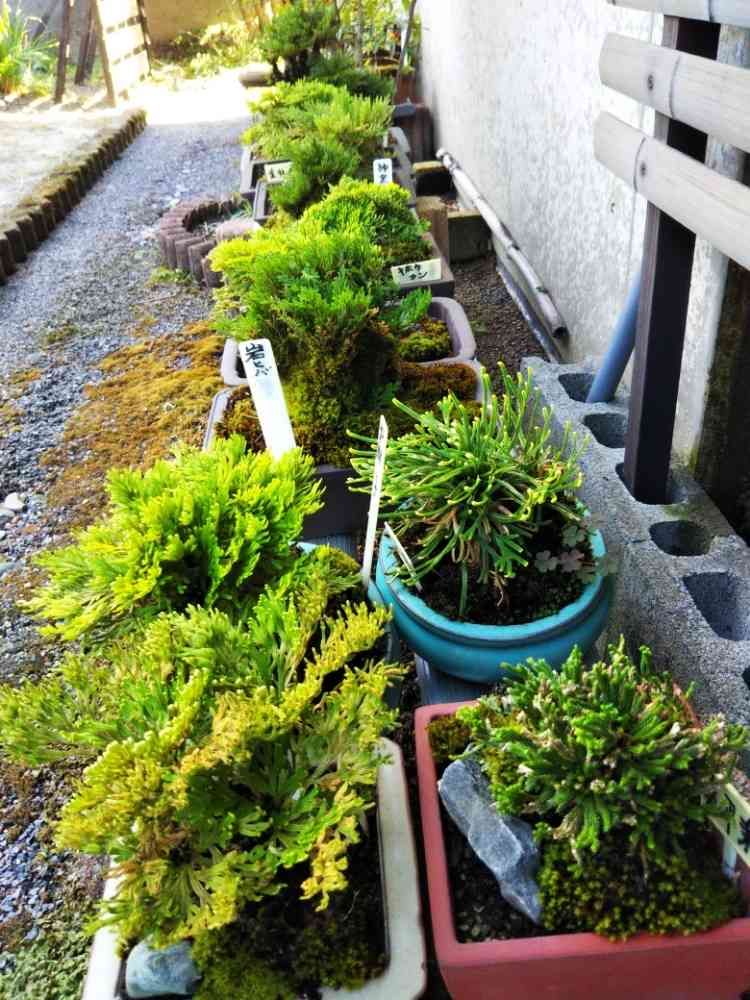 我家の岩ひば軍団(6種)11鉢勢揃い、朝晩たっぷり水やり❗️猛暑の中一番綺麗な時です。晩秋までここで過ごします。毎年少しづつですが成長してくれます。ここは午前中陽当たり、昼以降は早め建物の日陰になります。