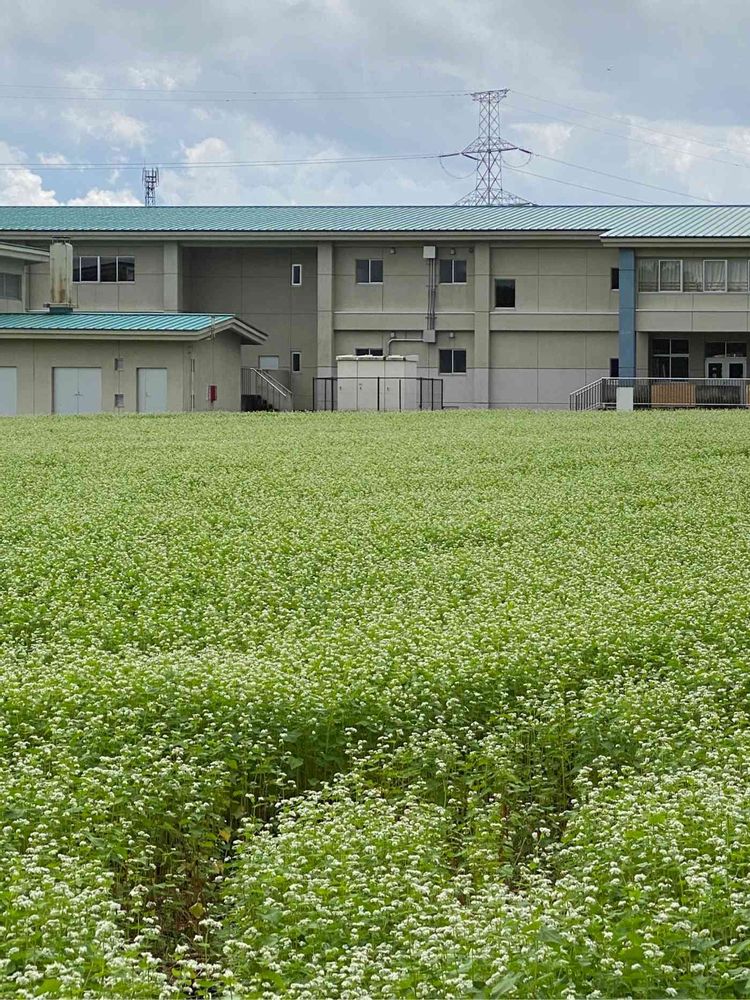 蕎麦畑です〜子供達が通った小中学校の裏です❣️小中併設学校なんです…田舎でもなかなか無いですね小中一緒は😆
