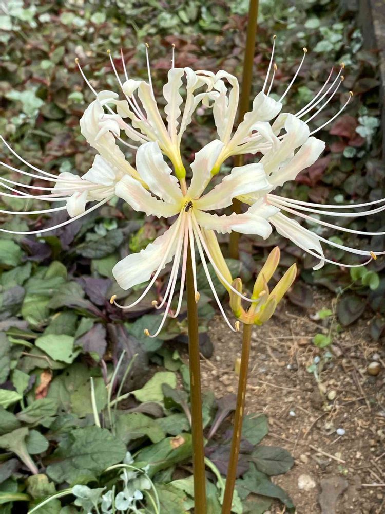 ヒガンバナにとても似ていますが、ヒガンバナの白い種ではないのですね。