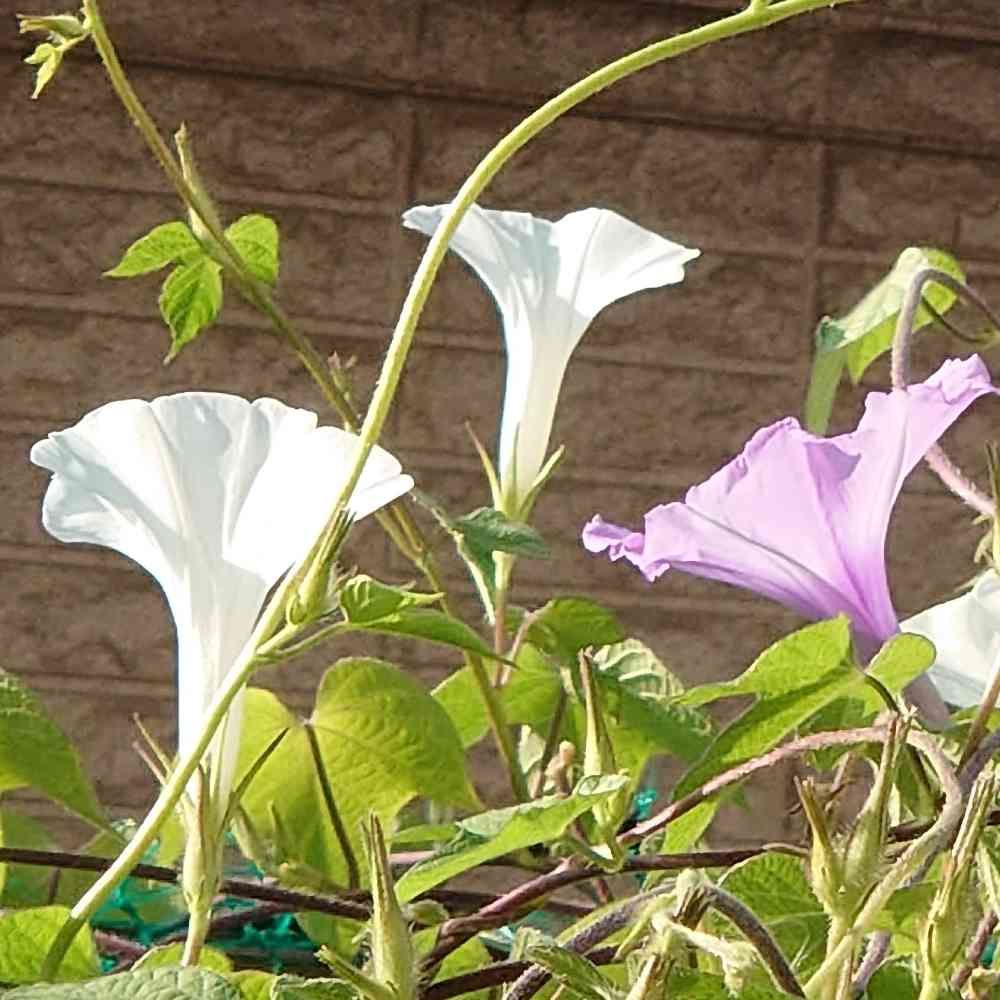 今日のお花、朝顔🤍と、紅葉昼顔💜