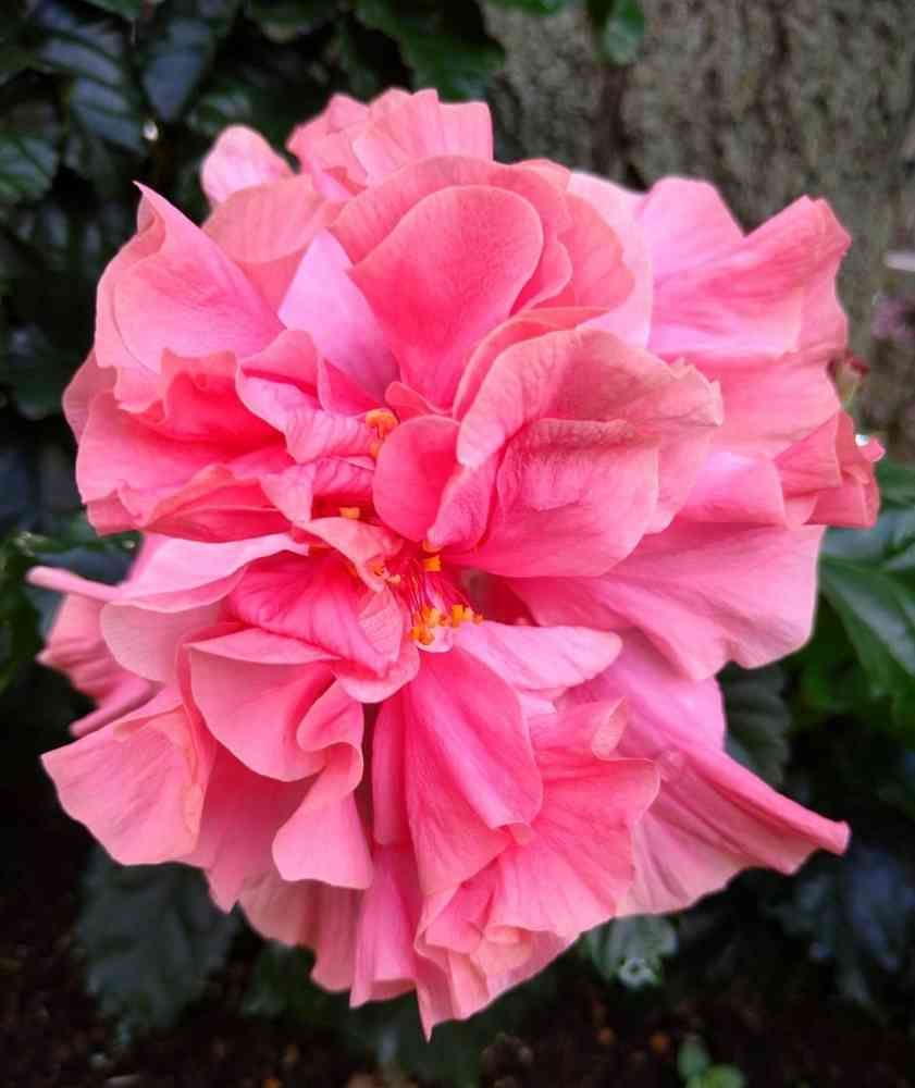 ピンク色の八重咲きハイビスカスの花、とても素敵です✨✨