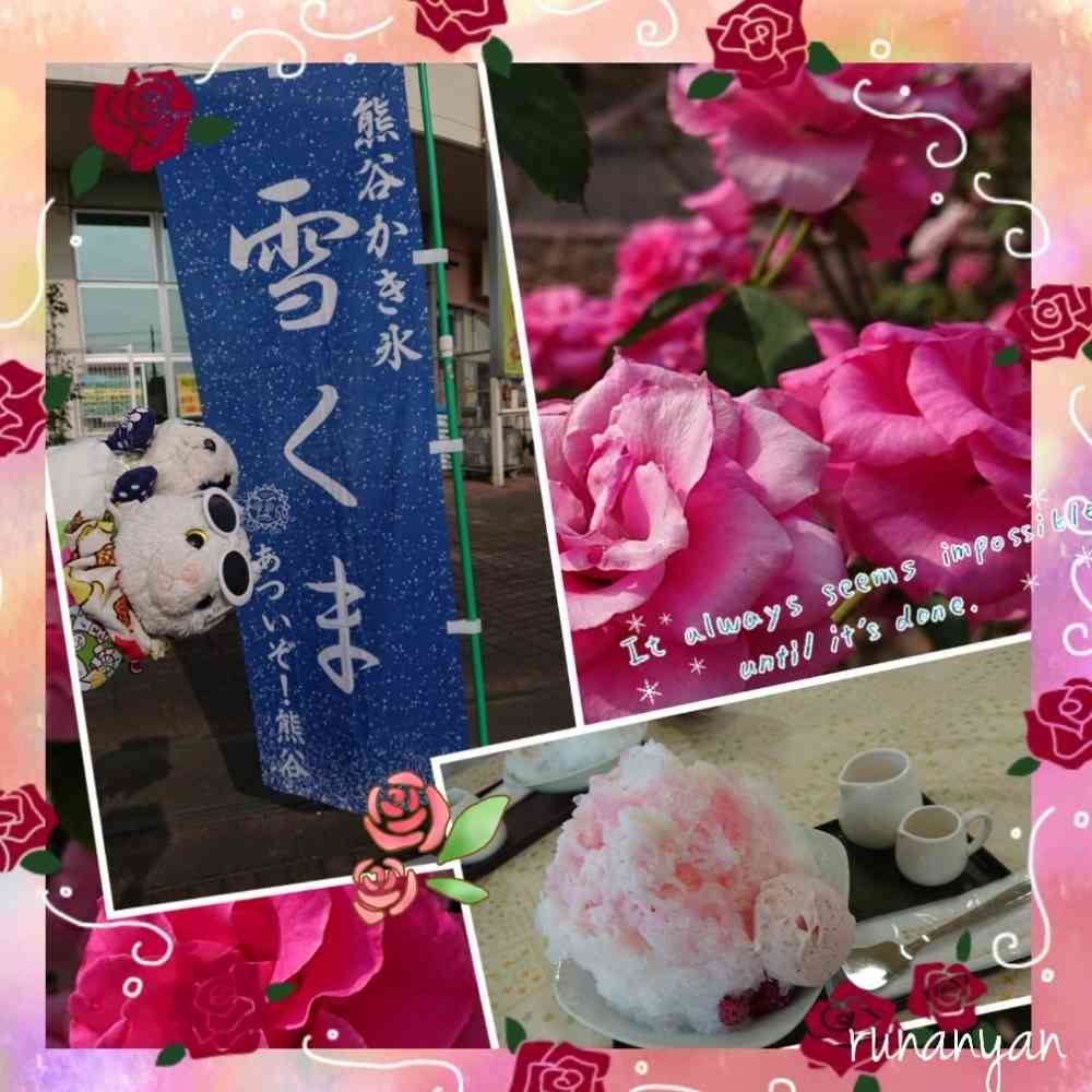背景の薔薇は、かき氷を食べた場所に咲いていた薔薇園のです😊