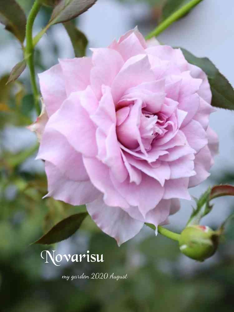 ノヴァーリスは青薔薇です。色は薄紫色なのですが、夏は春よりちょっとピンクっぽくなっちゃいました。