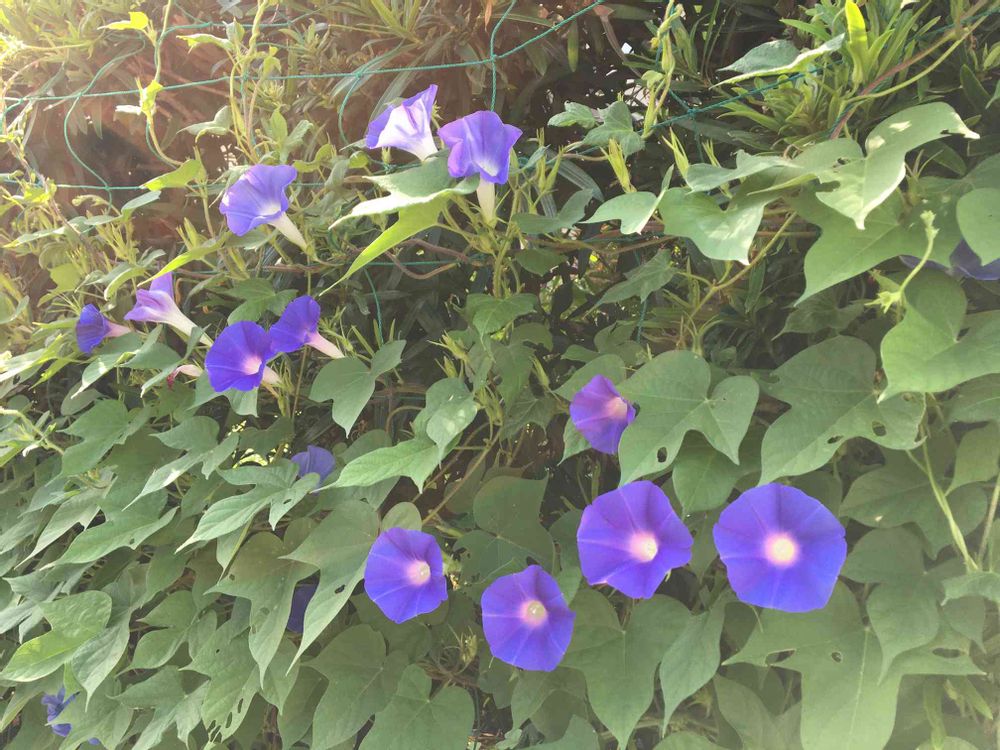 今年は、いつもの西洋朝顔は種まきに失敗してしまったので、こぼれ種から出てきた朝顔ですが、暑い中爽やかなブルーが涼やかです〜〜✨✨