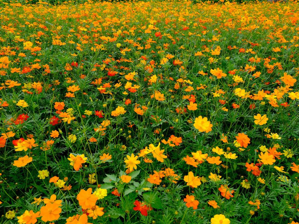 | おまわりさんこいつがキバナコスモスに飛び込んでいました|