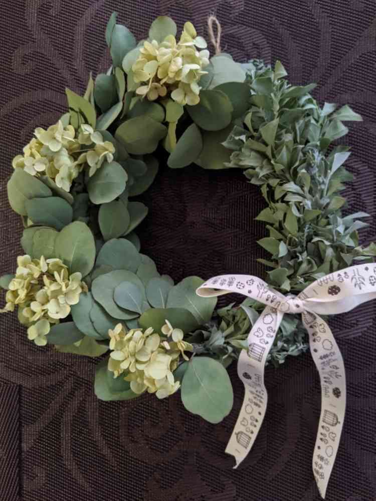庭のユーカリ、3角ミモザが伸びたので切ってリースを作りました🍀🎶