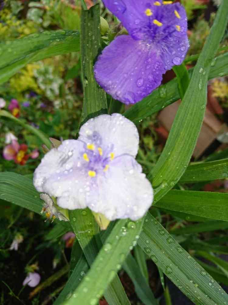 昨日の間違えてかった水色の露草と隣は普通の露草です🎵