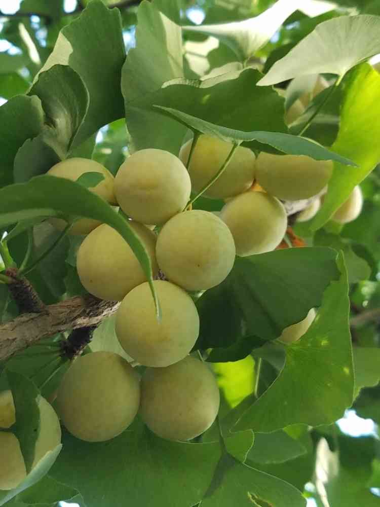 最初は、見当たらないなぁと思ってたのですが、よく見たらカワイイ実がありました。まん丸でみずみずしい感じでいつもの銀杏とは違っていました。ちょっと感動でした😄💕ありがとうございます😄