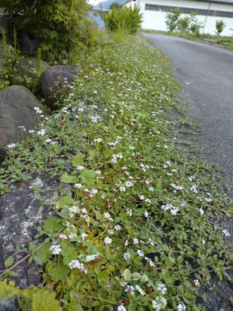 まだまだ 何とか草 🏠️前道路側に ずー先まで小さなお花咲いてます……🎵