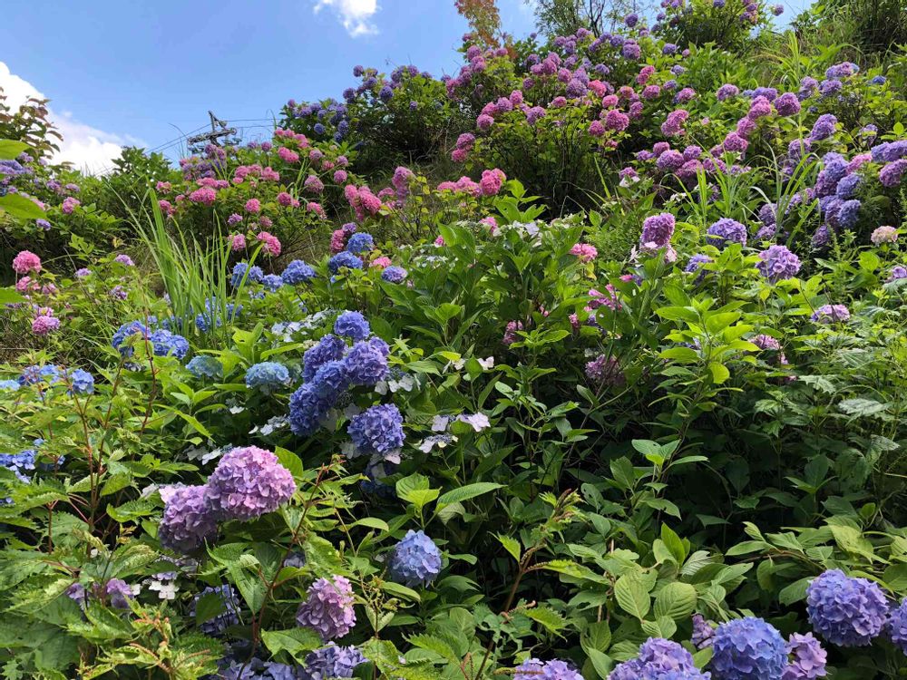 山のゴンドラ乗り場に咲いていた色とりどりの紫陽花💓💜💙