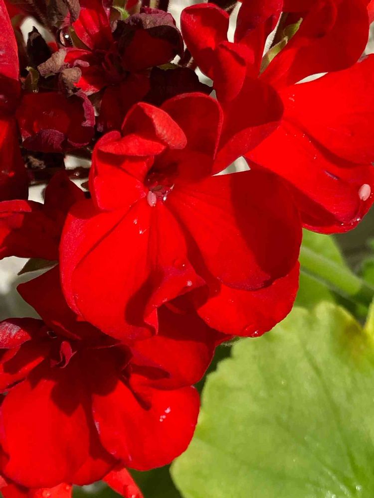 ベランダが緑化していく中、、貴重なゼラニウム真ん中が黒くなっていますが、、カットせずにもうしばらくそのままにして、、🌸
