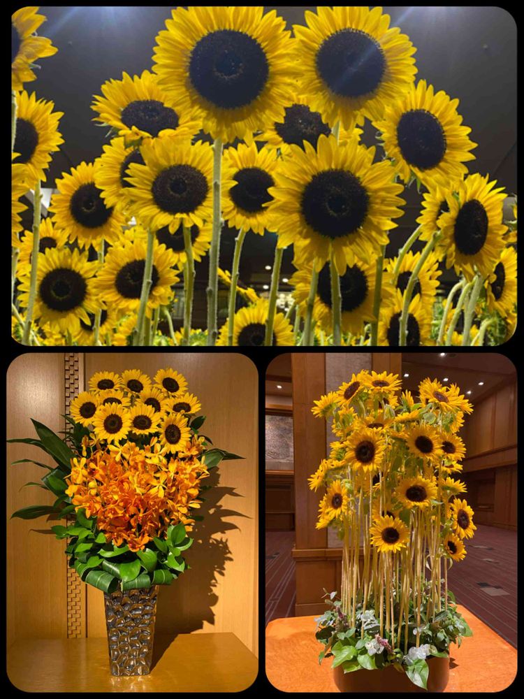 デザインを変えた向日葵のアレンジが飾られています🌻