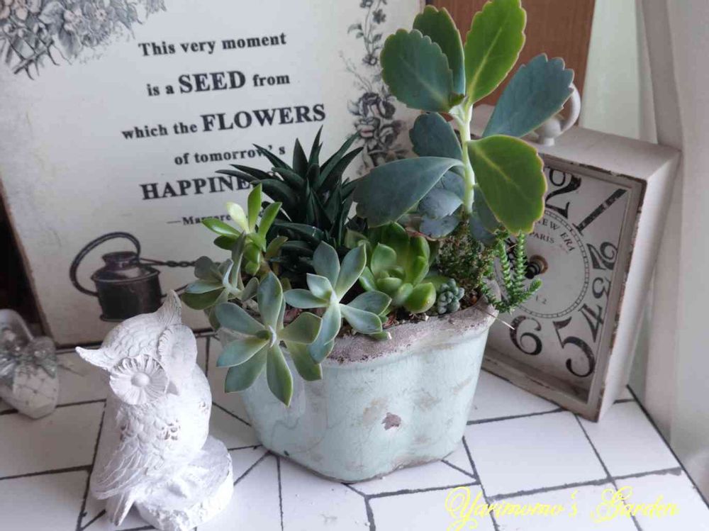 寄せ植えの植木鉢も含め、写ってるものはすべて同じ雑貨ショップで購入しました💕🦉