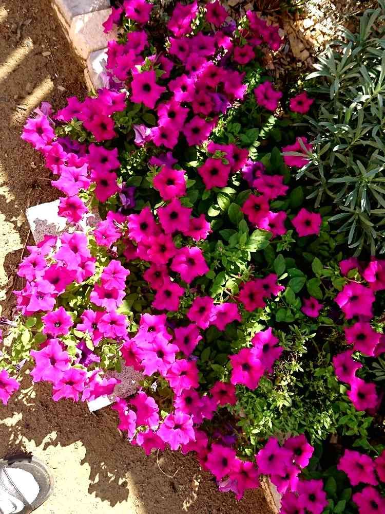 春のスティホームの時に 娘がどうもりみたいに 花壇を作ると言い出し その時に出来た花壇に植えた サントリーのサフィニア😆