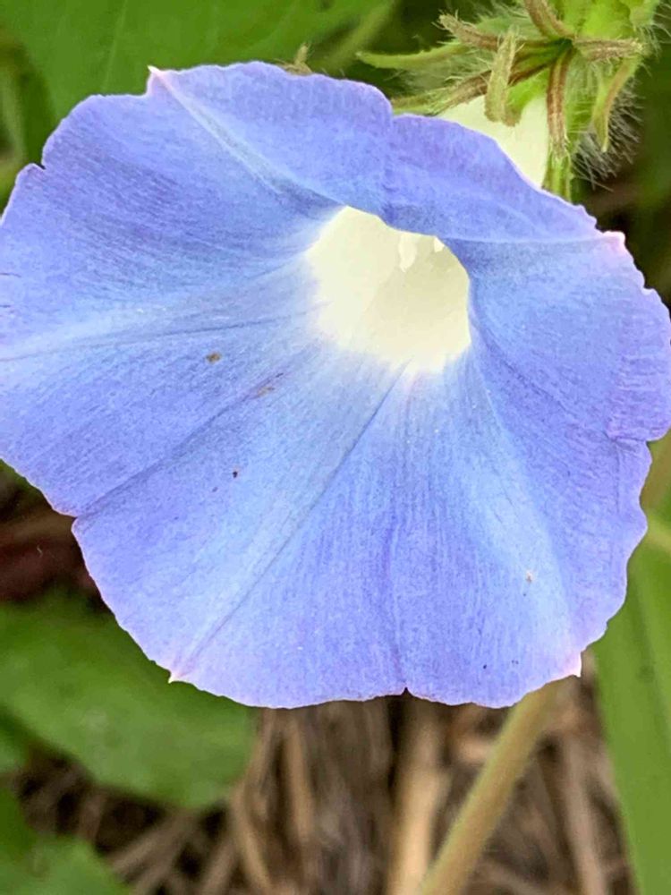 散歩の途中で、草むらの中に咲いてたアサガオさん!直径2㎝位の花でしたが凄く涼しい色で綺麗でした!(╹◡╹)♡