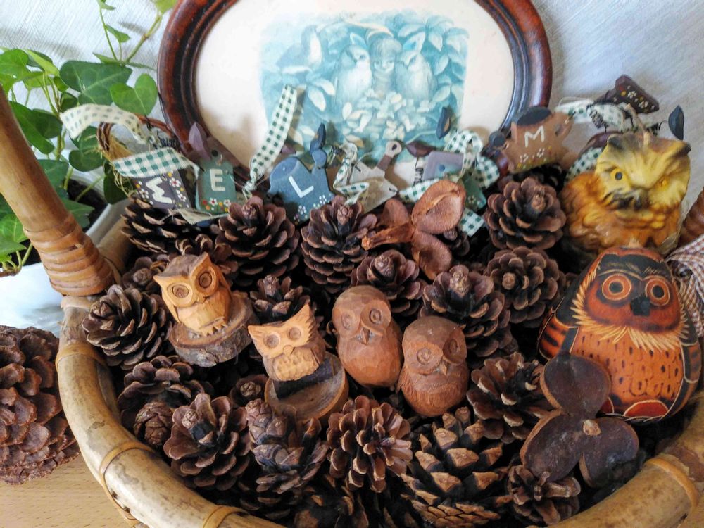 手前の小さな双子のふくろうさんは北海道で買ったもの。