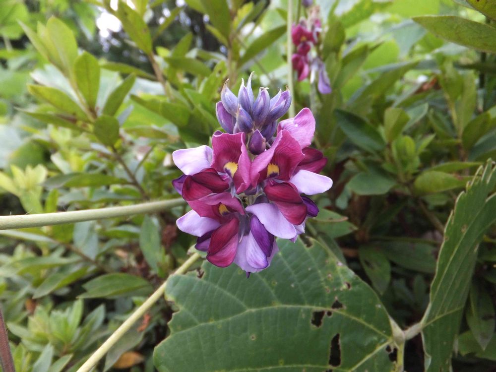 朝の通勤途中。 ツツジの上に繁茂した「クズ(葛)」に綺麗な花が咲いていました。パチリ