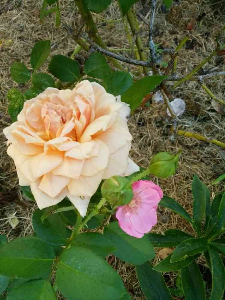 バラの根元にカラカラ雑草マルチングをしてあげてからか、心なしか元気になりました。