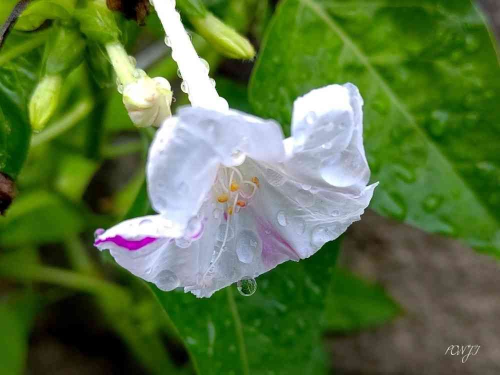 咲き残っていたオシロイバナさんはしっとり濡れていました✨🤗✨