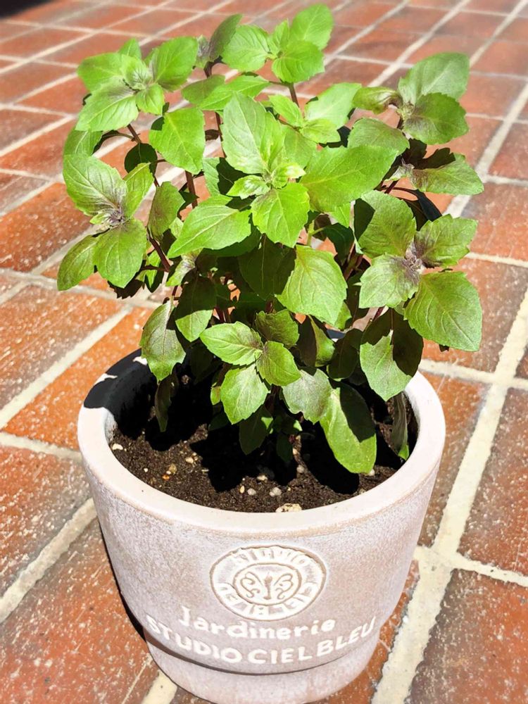 葉色が赤紫色のバジルダークレディーに目が留まり、早速鉢に植えてみました。