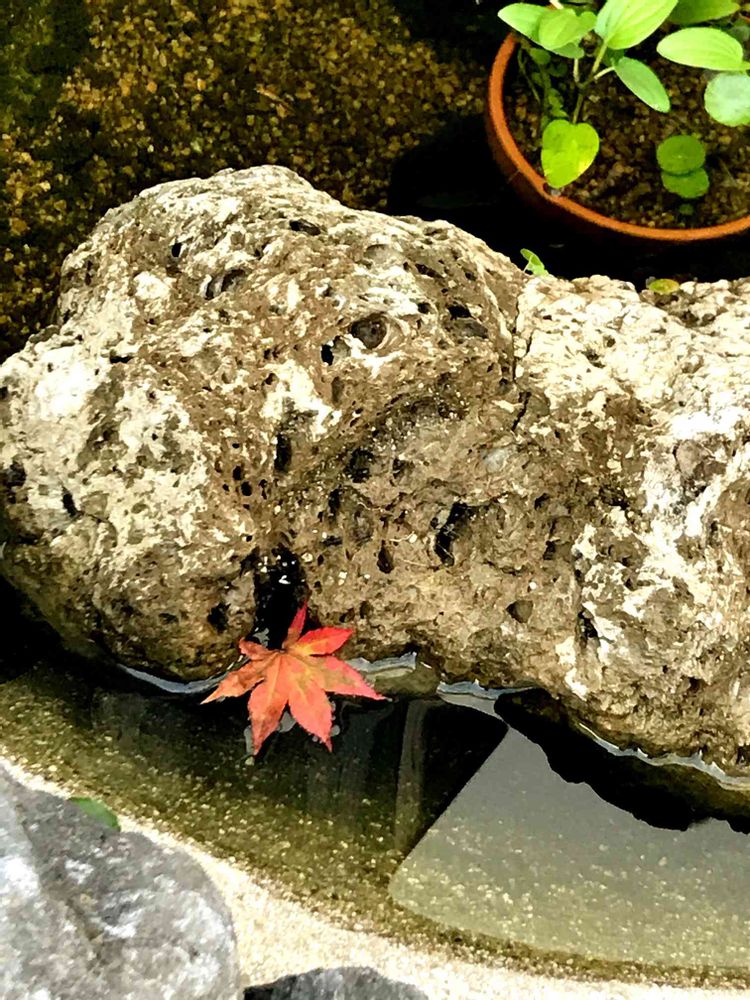 モミジの葉が一枚のシンプルな水辺。