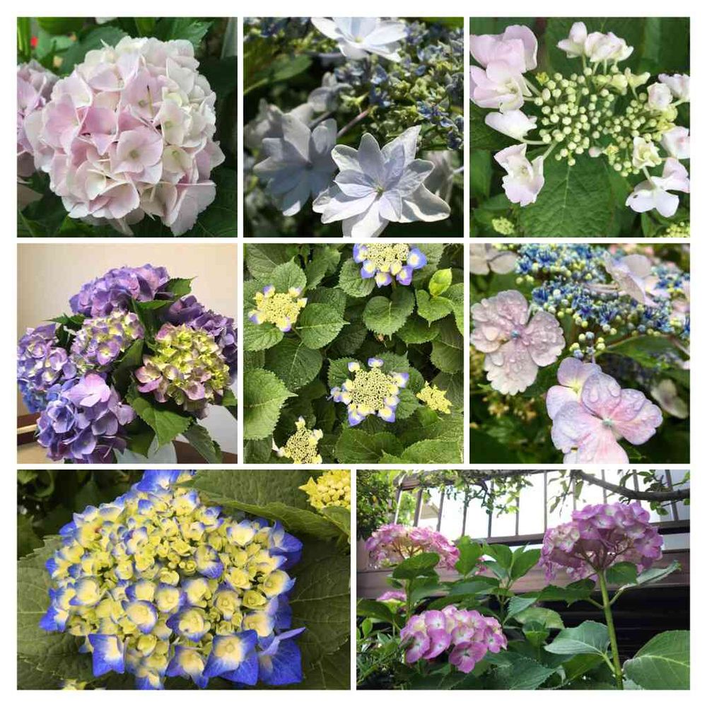 真ん中列右端は裏のお家のガク紫陽花さん 転居して今月中頃には伐採されて更地になってしまいました。無事に挿し木が着いてくれたら嬉しいのですが💦