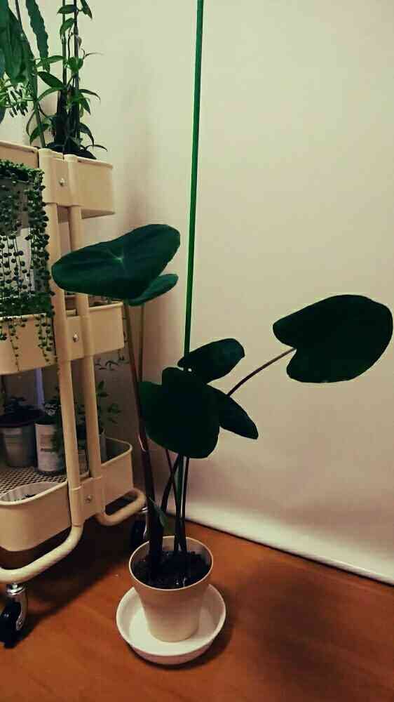里芋さん。窓辺に置いてたら、突然の突風で、葉っぱが、1本折れてしまいました😓💨