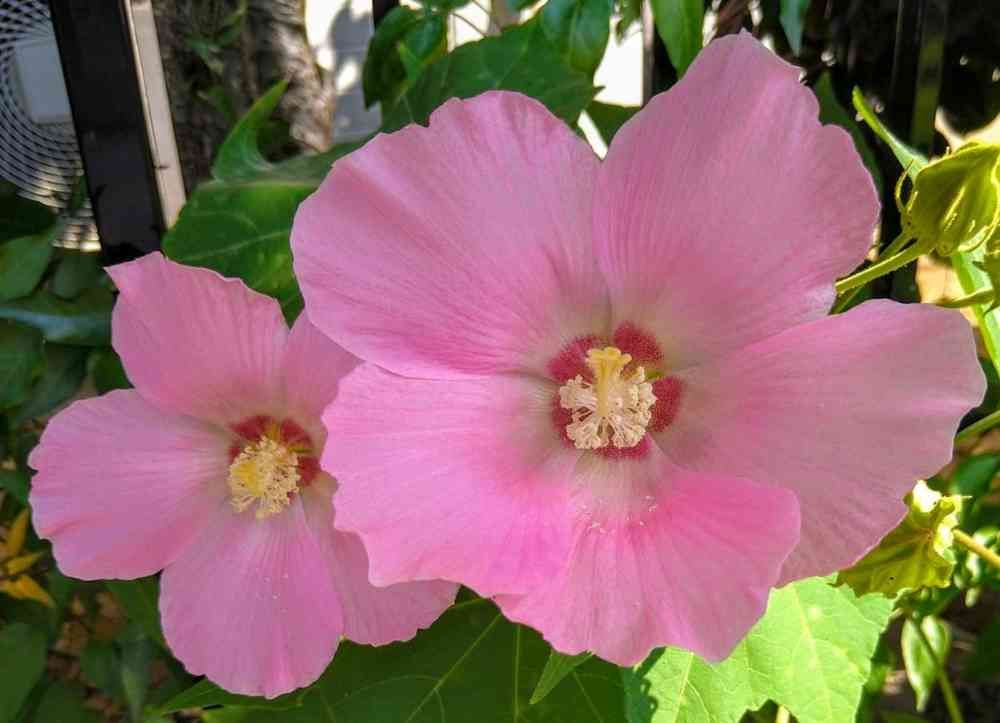 二つ並んだピンク色の芙蓉の花、可愛いです✨✨