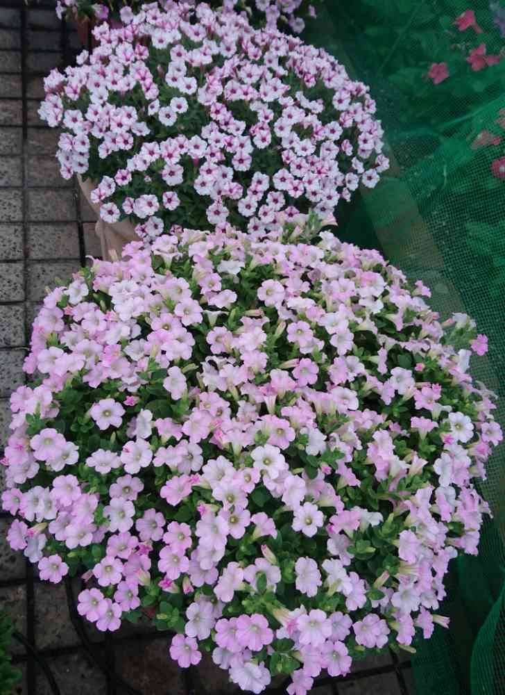 ほぼほぼ満開になったペチュニアソフィアの宝石とスーパーチュニアビスタ ミニピンクスターです。