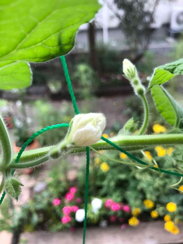 今朝よーく見たらひょうたんさん2つでした!でも雄花がない💧夕方咲けば受粉できるのかな?まだ早いのかしら?