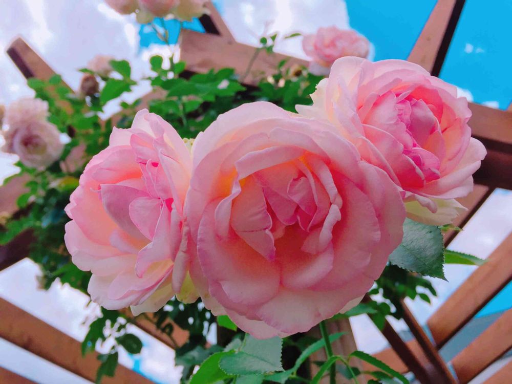 淡いピンク色が青空に映えて(´。•ᄉ•。`)キュンッ♡︎💕