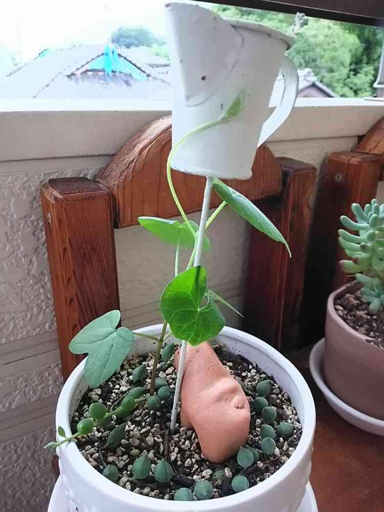おはよーアサガオと多肉のコラボかわいい〜〜台風くるね〜〜避難させなきゃたね〜〜