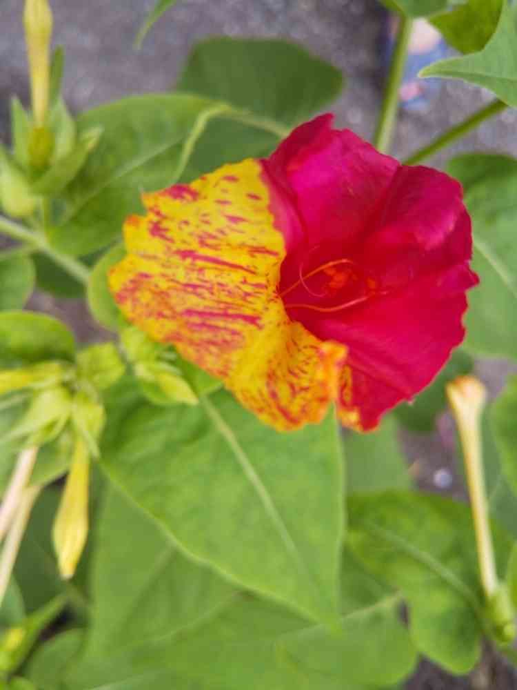 出た〜!!半分仮面のオシロイバナですね〜。なかなか出会いませんよね。