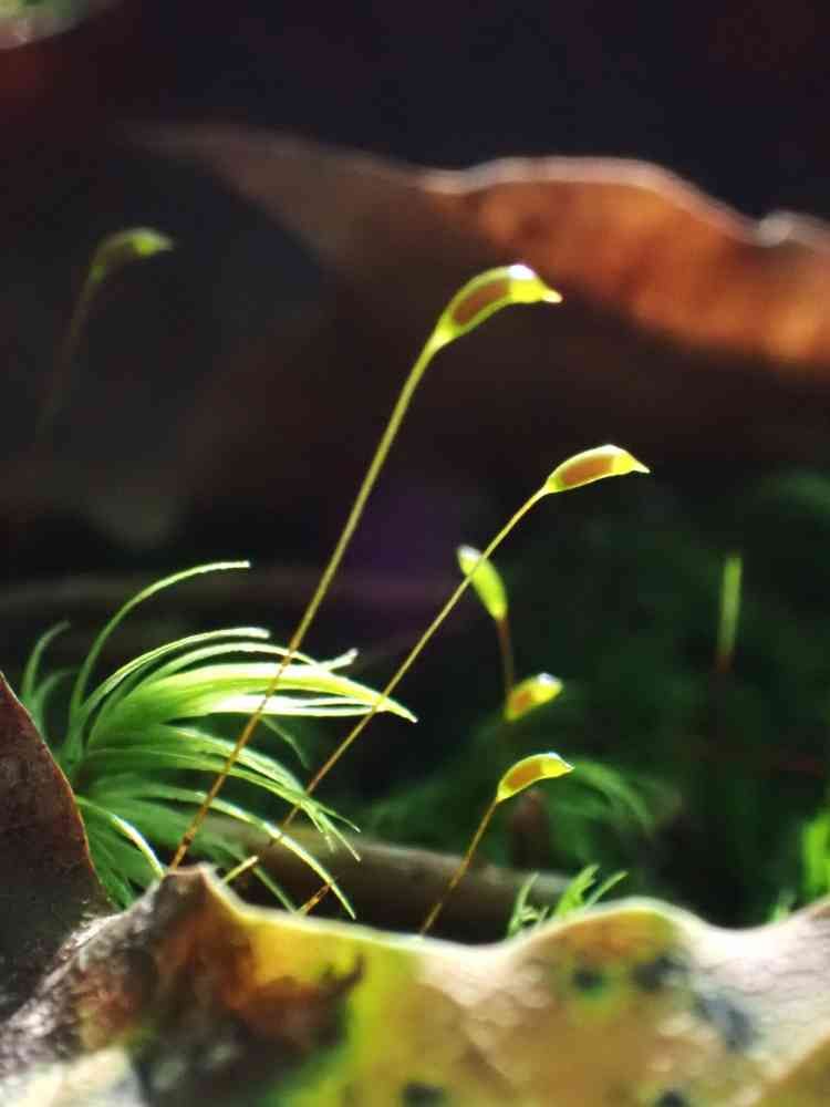 光の中に浮かび上がる苔の蒴💕