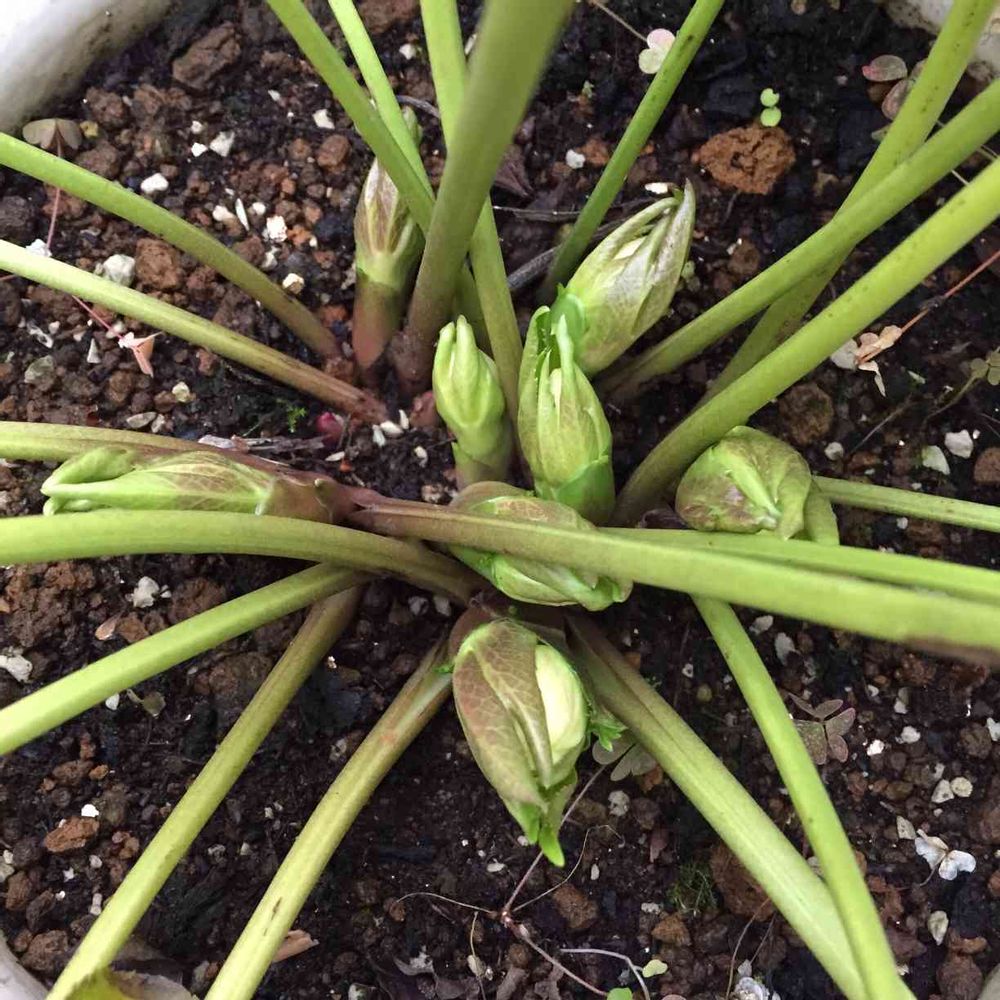 クリスマスローズの花芽が、やっと出て来ました😊💕去年お迎えした子ですが、どんなお花だったか忘れました💦
