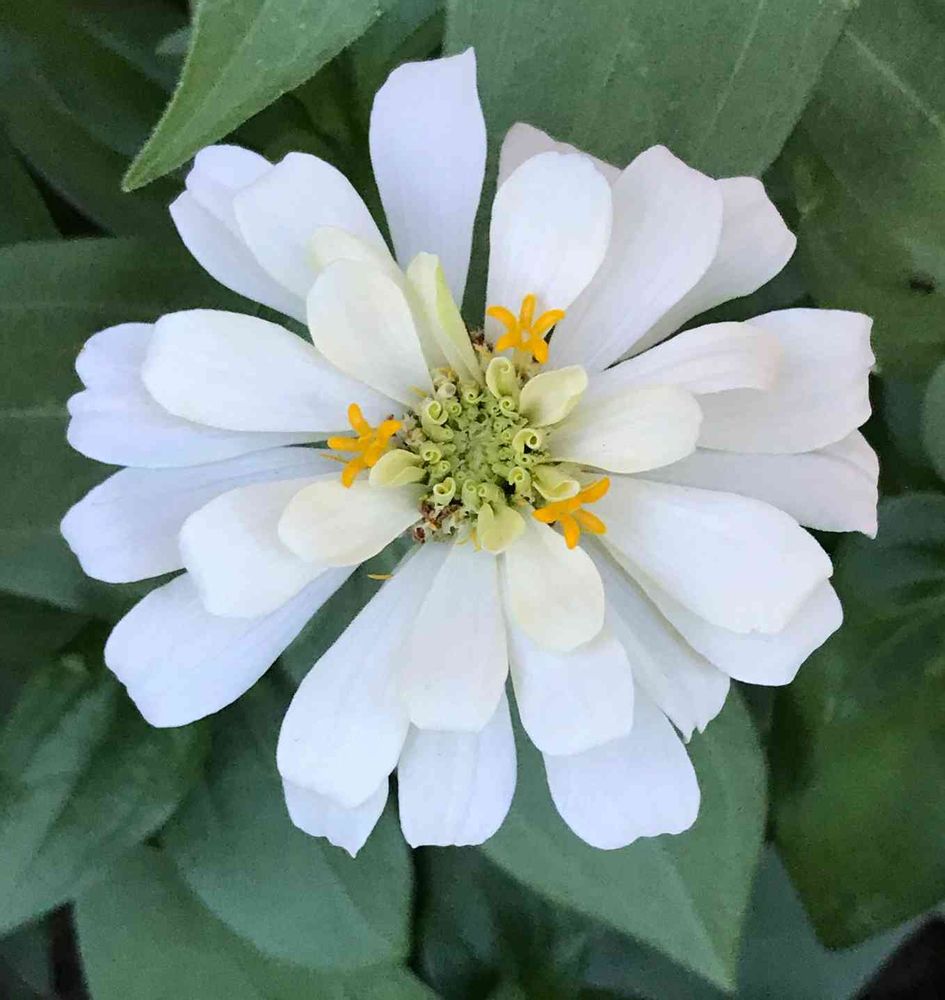 ジニアの純白とっても爽やか。☺️🌿通り道の花壇に。