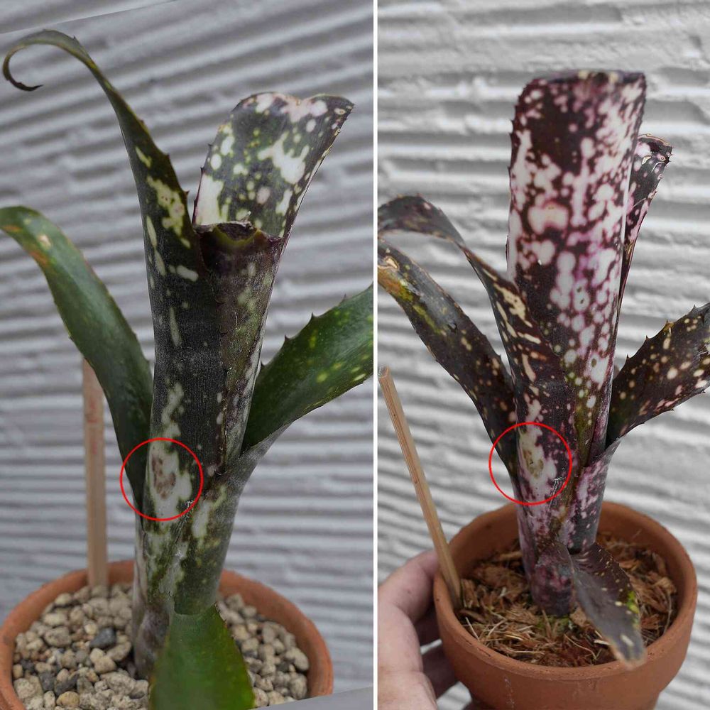 でも今までほとんど動かずのビルベルギア ハナホウでしたが、この2ヶ月で写真のように色も柄も大きさも太さもガラッと変わりました。