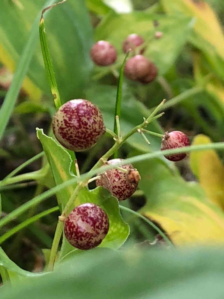 アケボノソウの隣には、宝石がこぼれた様な、「マイヅルソウ」の実が‼️