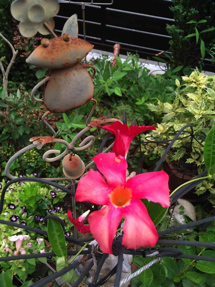 こんにちは👋😃お花もだけど、いつもお庭のオブジェが可愛い。以前のブリキのネコも、このカエル🐸さんも😍💓