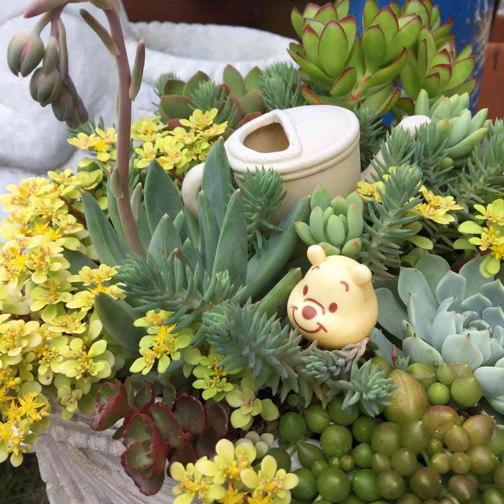プーさんの爽やかイメージの、大きな寄せ植えに
