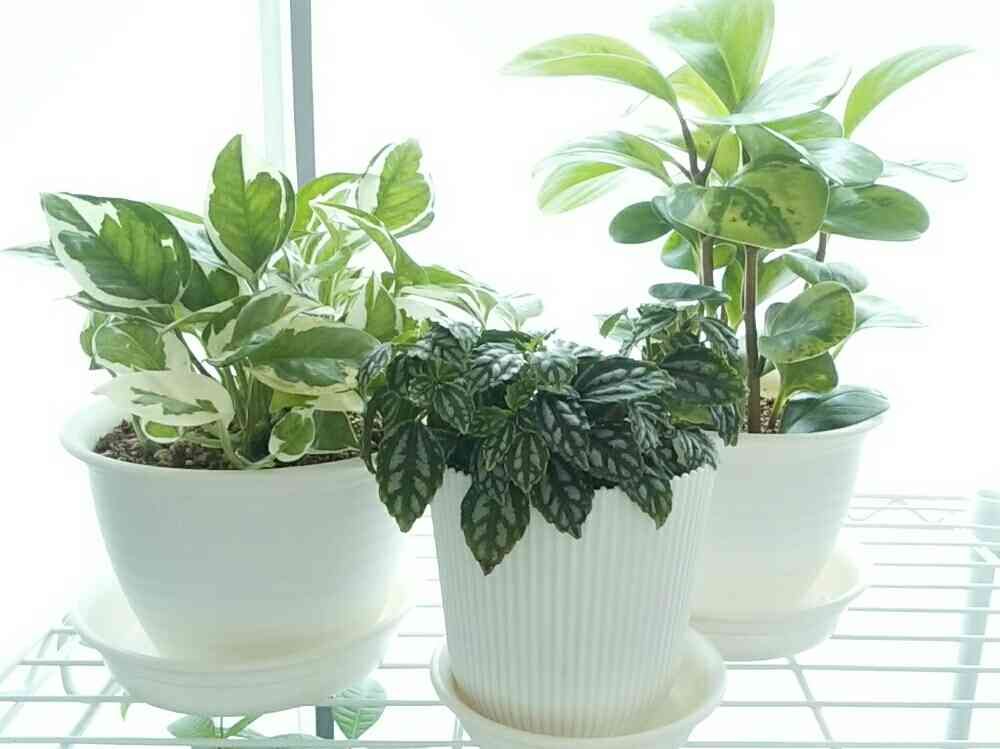 ユニディ出身のポトスちゃん、ピレアちゃん、ペペロミア・オブツシフォリア?くん。最近生長がゆっくりな子達。
