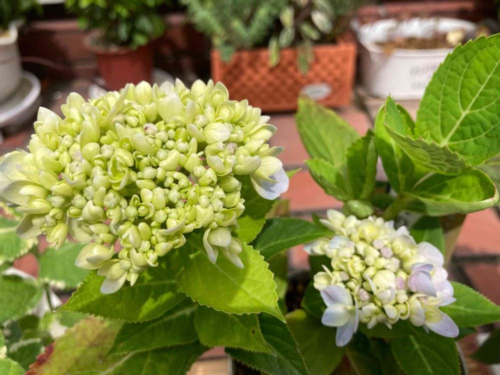 紫陽花 ピンクの霧島の恵 2ヶ月振りに咲いたんだけど、、、☺️