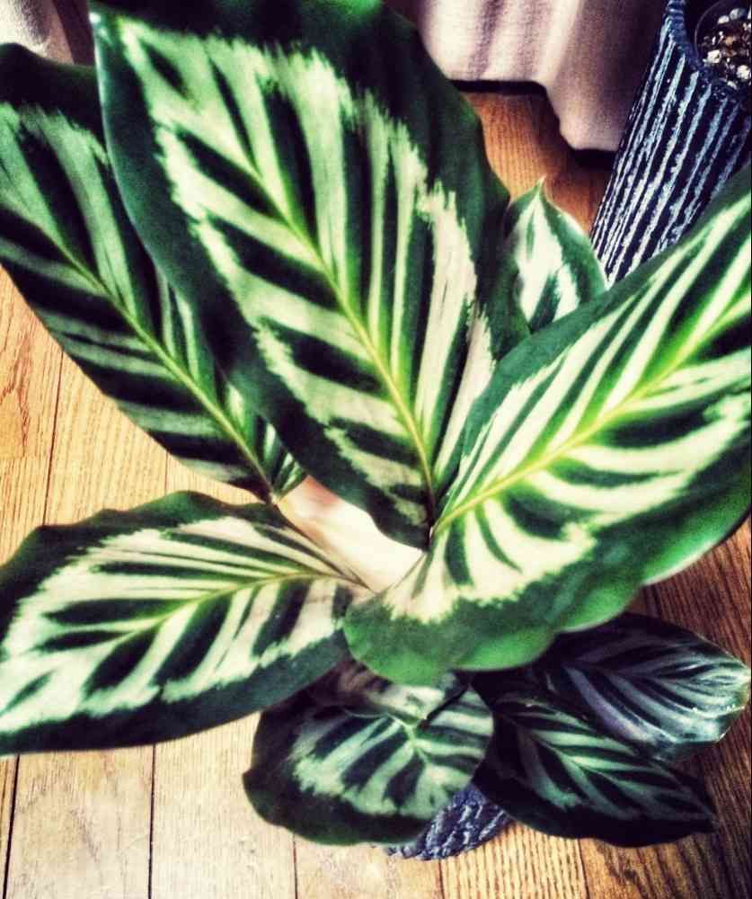 カラテアって裏側がパープルの多くて夜と昼の違いが見ていて楽しいですね😊