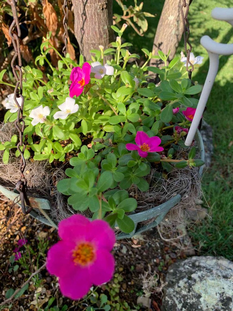 ポーチュラカ白とポーチュラカ華ミステリア次々と咲いて💕