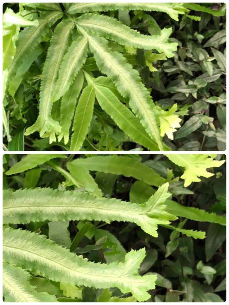 獅子葉のプテリスの仲間じゃないでしょうか。手のようになっているものは、獅子葉とよばれています。